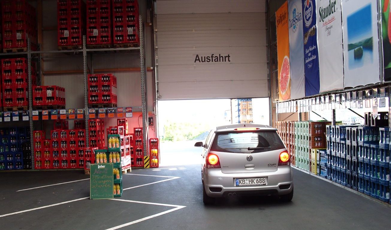 Sie fahren vor die Halle und das Tor öffnet sich automatisch, im Markt sind ausgezeichnete Parkplätze.